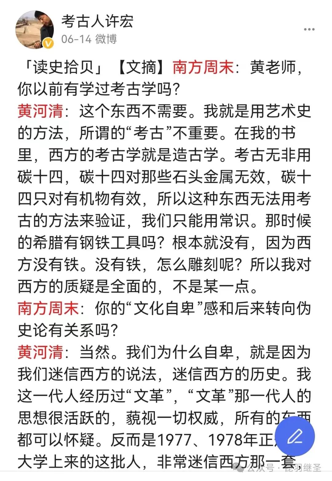 黄老师上下文表达的意思是:质疑西方伪史,学习考古并非必要。