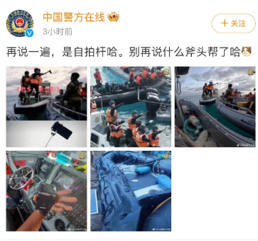 最后再帮中国警方辟下谣,中国海警登上菲律宾海军船只时手持的是自拍杆,不是斧头,请勿再继续传播错误说法。