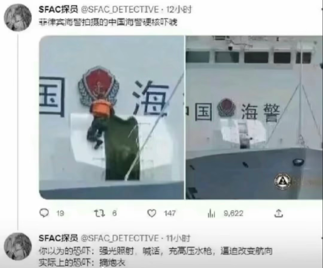 官方层面中国海警其实给菲律宾方面留足了面子,但既然菲律宾自己不要,那我们就不必顾忌他们的面子了,反正所有的证据都是菲律宾官方自己放出来的。