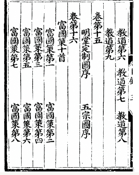 李觏所撰《直讲李先生文集(旴江文集)》(四部丛刊景明成化本,第3页)不仅有富国策十首(卷第十六),还有强兵策十首(卷第十七)、安民策十首(卷第十八)。
