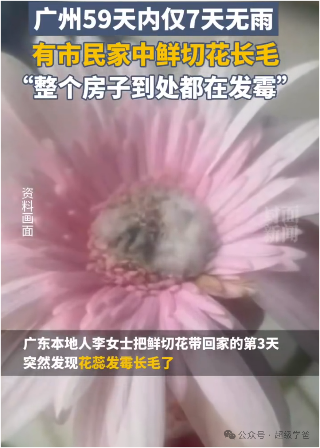 南方持续两个多月的雨季,也让北方的网友大开眼界,原来在南方万物皆可发霉,什么墙壁发霉,皮包发霉、棉签发霉、鞋子发霉、数据线发霉,方向盘发霉,竟然连鲜花也能发霉。