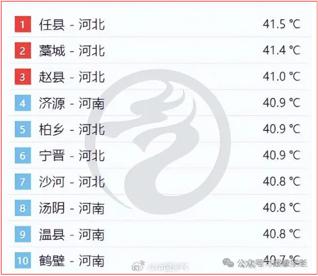 与南方洪水肆虐形成鲜明反差的是北方的高温干旱,我们先说高温吧。6月份以来,,河北南部和河南北部,连续出现了40度以上的高温天气。6月12日,任县气温高达41.5度。