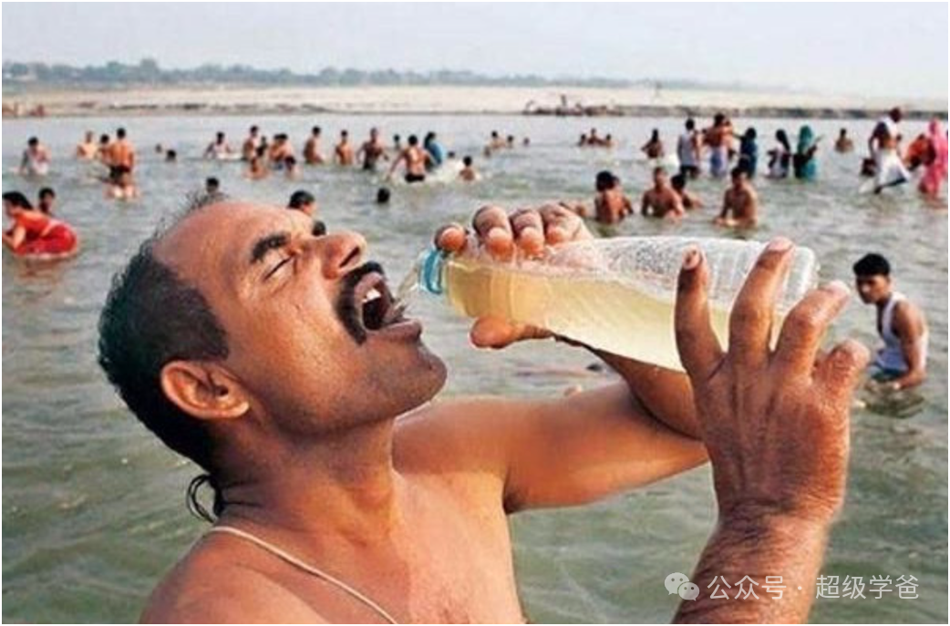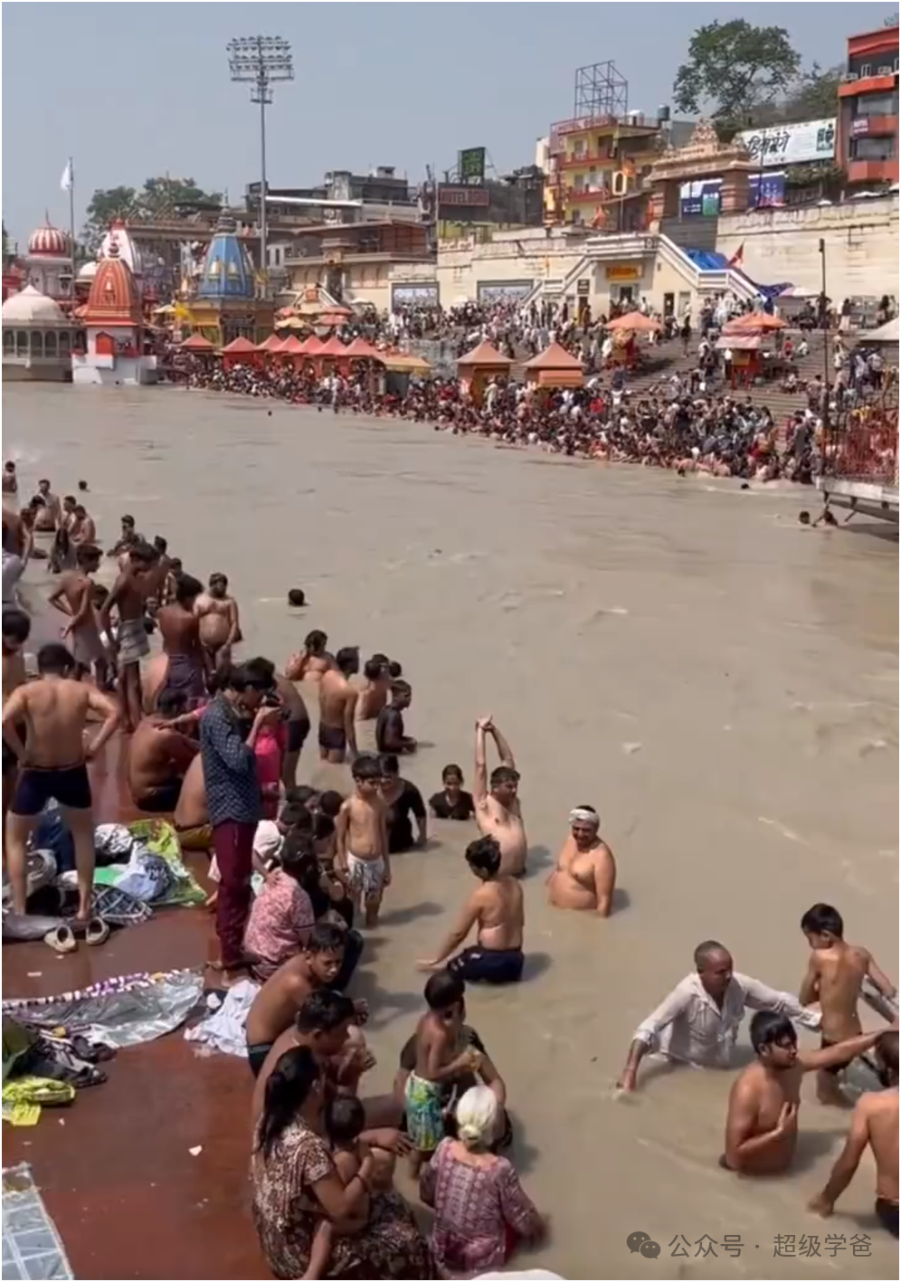 恒河边的印度人是幸福的,因为他们可以泡在营养丰富的恒河水里。在印度人的眼里,恒河水是神圣的,也是包容的,包容了泥沙,包容了污染,包容了死尸,如今又包容了印度的男女老少。