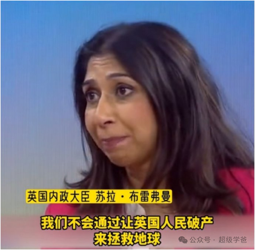 2023年9月21日,英国内政大臣苏拉·布雷弗曼说:我们不会通过让英国人民破产来拯救地球。当初你们要求发展中国家减排,可不管人家破产不破产。
