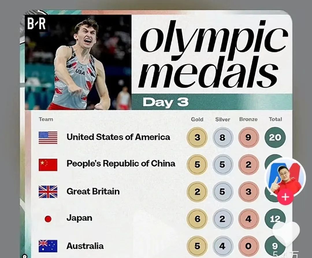 这一届奥运会前几天的赛程,美国在金牌榜上的排名情况不理想,美国一家媒体又开始动用了美国媒体在2008年就用过的魔法,就用奖牌榜,把美国排到了第一。