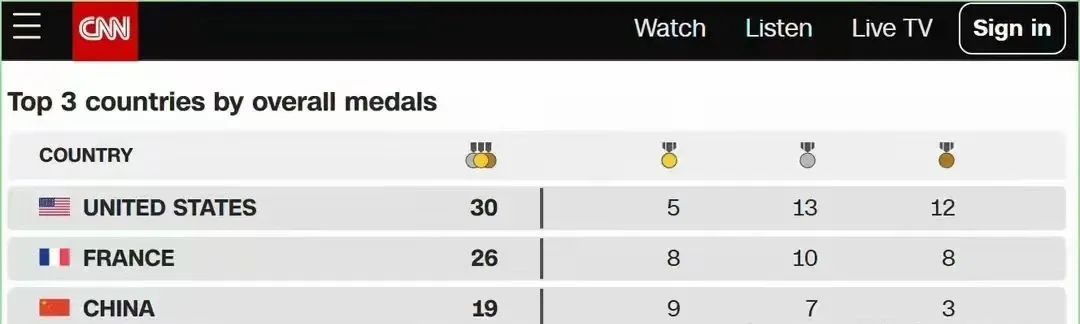 开幕式到现在,美国还没有冲到金牌榜第一,美国的一些主流媒体,早早就用奖牌榜排名把美国送上第一。