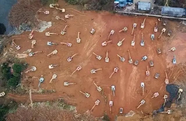 武汉爆发新冠时,为了解决医疗资源不足,2020年1月23日,武汉决定参照北京小汤山医院模式建设武汉蔡甸火神山医院,建设面积达2.5万平方米,可容纳1000张病床。当时由中国建筑中建三局牵头,地方国企实施建设,调动多家央企提供支援。一时间,上百台挖掘机、推土机和各种施工机械从全市各地涌来,全国各地的工程施工人员蜂拥而至,数亿“云监工”在网上也迅速到位。