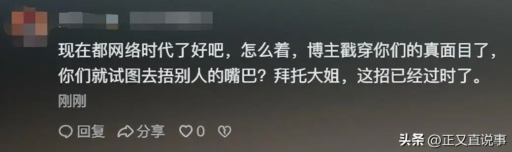 在评论区更是有网友一语中的地表示:现在网络时代,别人说中你了,你就试图去捂别人的嘴巴,这招已经过时了。