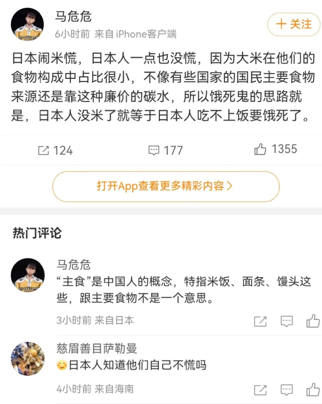 日本“米荒”明明是个大新闻,结果在互联网上却变成了“消失的新闻”,不但没人提,还有人洗地说——“大米不是日本的主食,日本人一点都不慌”。