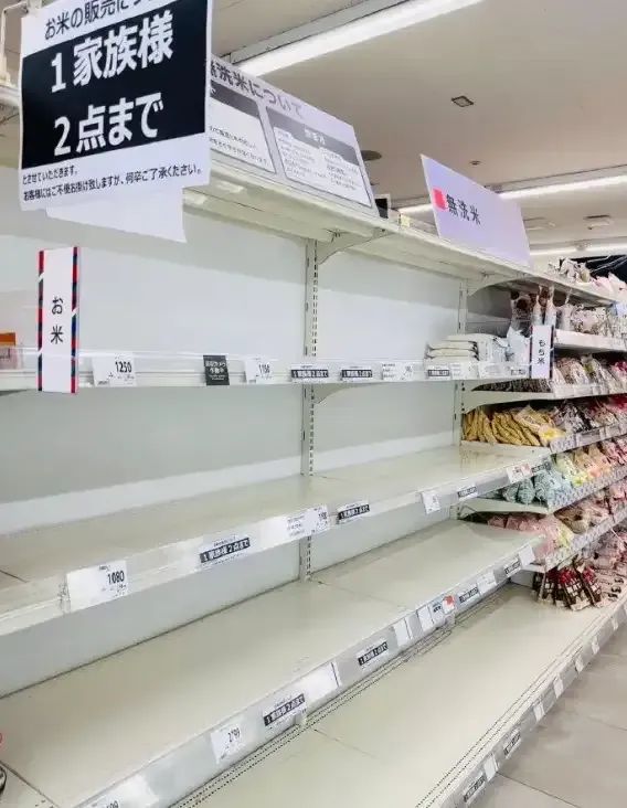 大阪府约80%的零售店出现大米断货情况。在首都东京,许多超市大米货架空空。类似情况也出现在埼玉县、福冈县、大分县和广岛县等地。