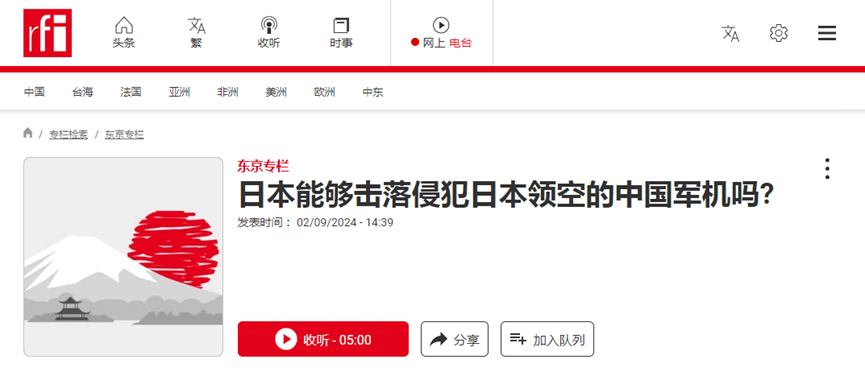 但日本自卫队官员这种歇斯底里的言论,即便连西方媒体都看不下去了。法国国际广播电台9月2日刊发的长篇分析称,针对外国航空器侵犯领空的行为,当事国会采取飞机紧急升空进行拦截等应对措施,按照国际法规定,这些措施需分阶段进行,包括:通过航空无线电进行警告、军用飞机发出警告;军用飞机进行威慑射击强迫着陆;击落(但原则上禁止攻击无防备的民用飞机)。