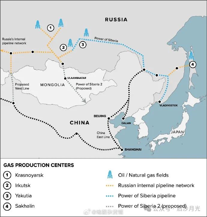 而经过蒙古国境内的“西伯利亚力量2号”(淡色虚线)进展却并不顺利。