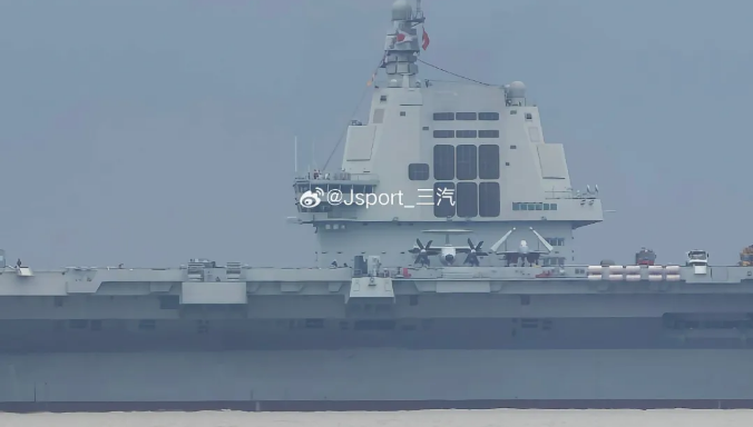 报道称,现场照片显示,福建舰起航时舰上飞行甲板搭载歼-15弹射型战机和空警-600预警机的全尺寸模型各一架。但如果细看的话,还能分辨出那架歼-15的机翼翼尖挂载的电子战吊舱,显示它实际是歼-15D电子战飞机的全尺寸模型。