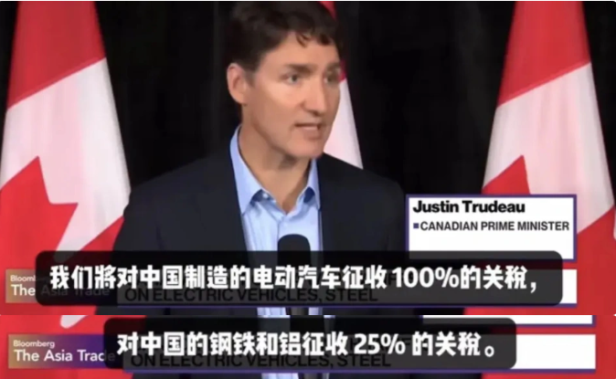 8月26日,加拿大宣布对中国电动汽车在目前6.1%关税的基础上,额外征收100%的附加税,10月1日起生效,对中国钢铁和铝征收25%的附加税,10月15日生效。