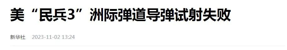 美国于2023年11月1日试射了一枚民兵-3洲际导弹,结果升空不久就出现了异常,不得不进行引爆。彼时,美国空军全球打击司令部发布公告证实,当天一枚“民兵3”洲际弹道导弹试射失败。公告称,这枚导弹由位于加利福尼亚州范登堡的太空军基地试射,试射过程中出现异常,任务于太平洋上空“被安全终止”。