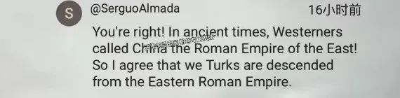 你说的对!古代西方人称中国味东方的罗马!所以我赞同你说我们土耳其人是东罗马帝国的后裔。