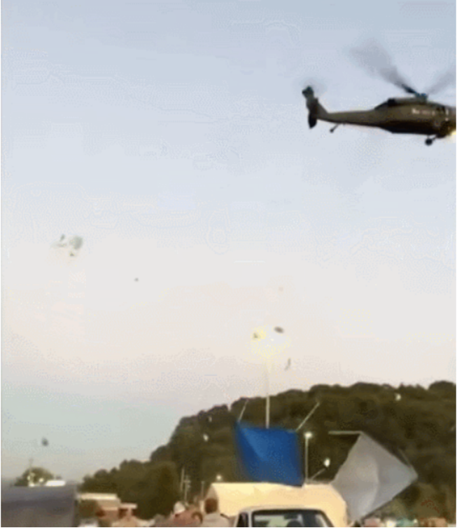 10月份,美国东南部连续遭遇了“米尔顿”和“海伦妮”两场超级飓风,造成了巨大的损失,期间出现了一系列诡异的现象,尤其是美国官方的直升机,疑似故意利用螺旋桨的风力,把救援组织的物资吹走,达到阻碍救灾的目的。