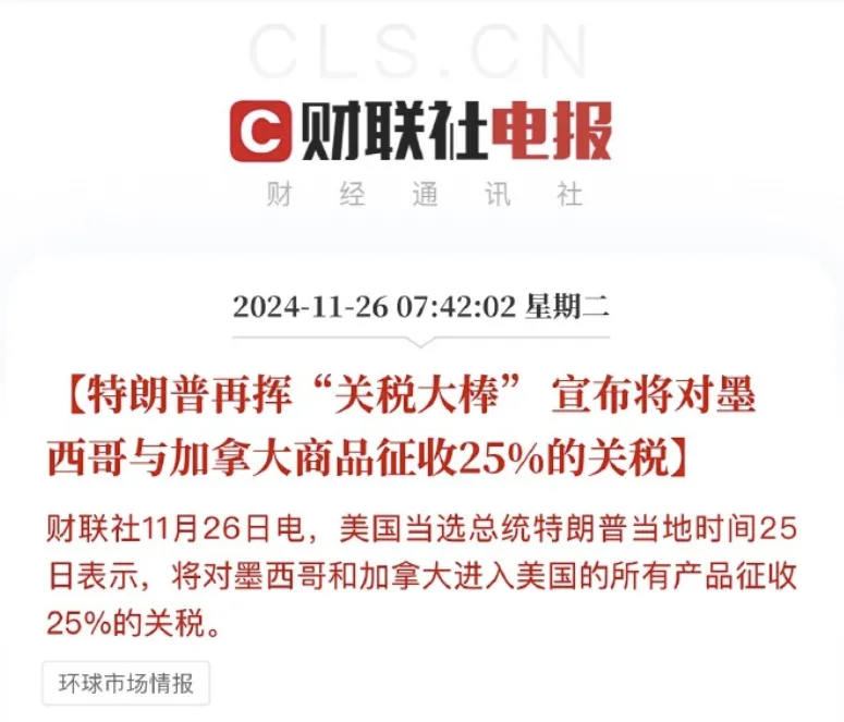 请注意特朗普宣布关税政策的时间节点,是11月25号,也就是本周一。