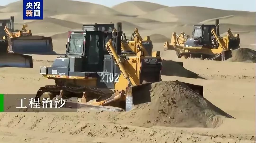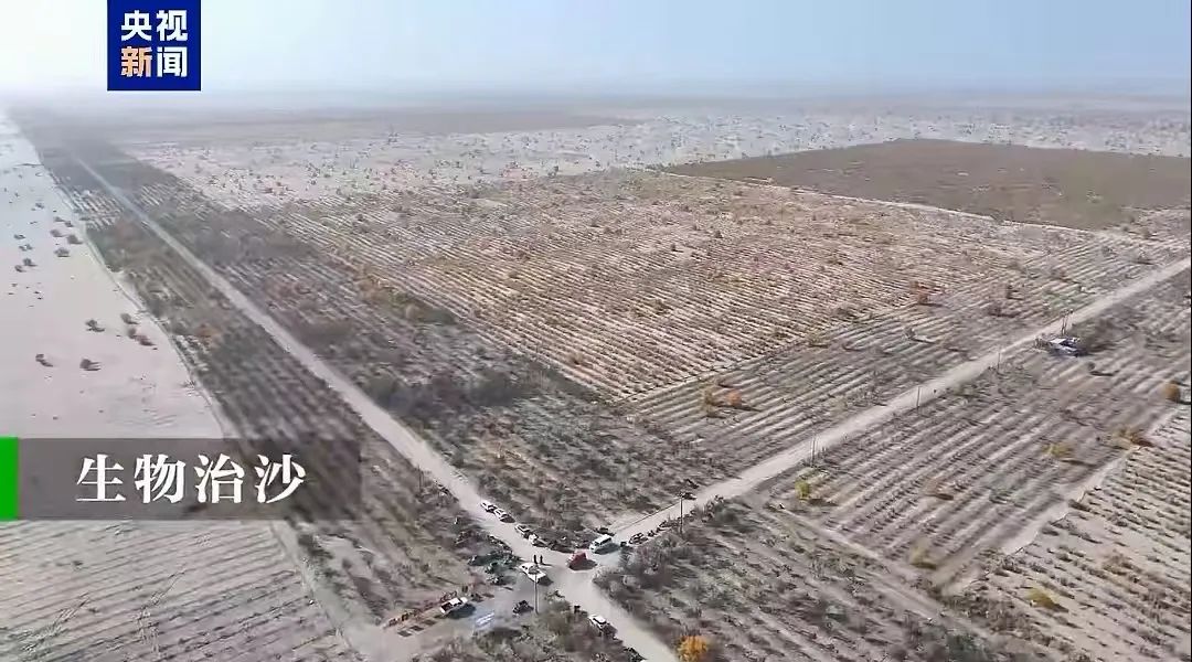 2023年11月,塔克拉玛干沙漠边缘阻击战正式启动。随后,工程治沙、生物治沙、光伏治沙……