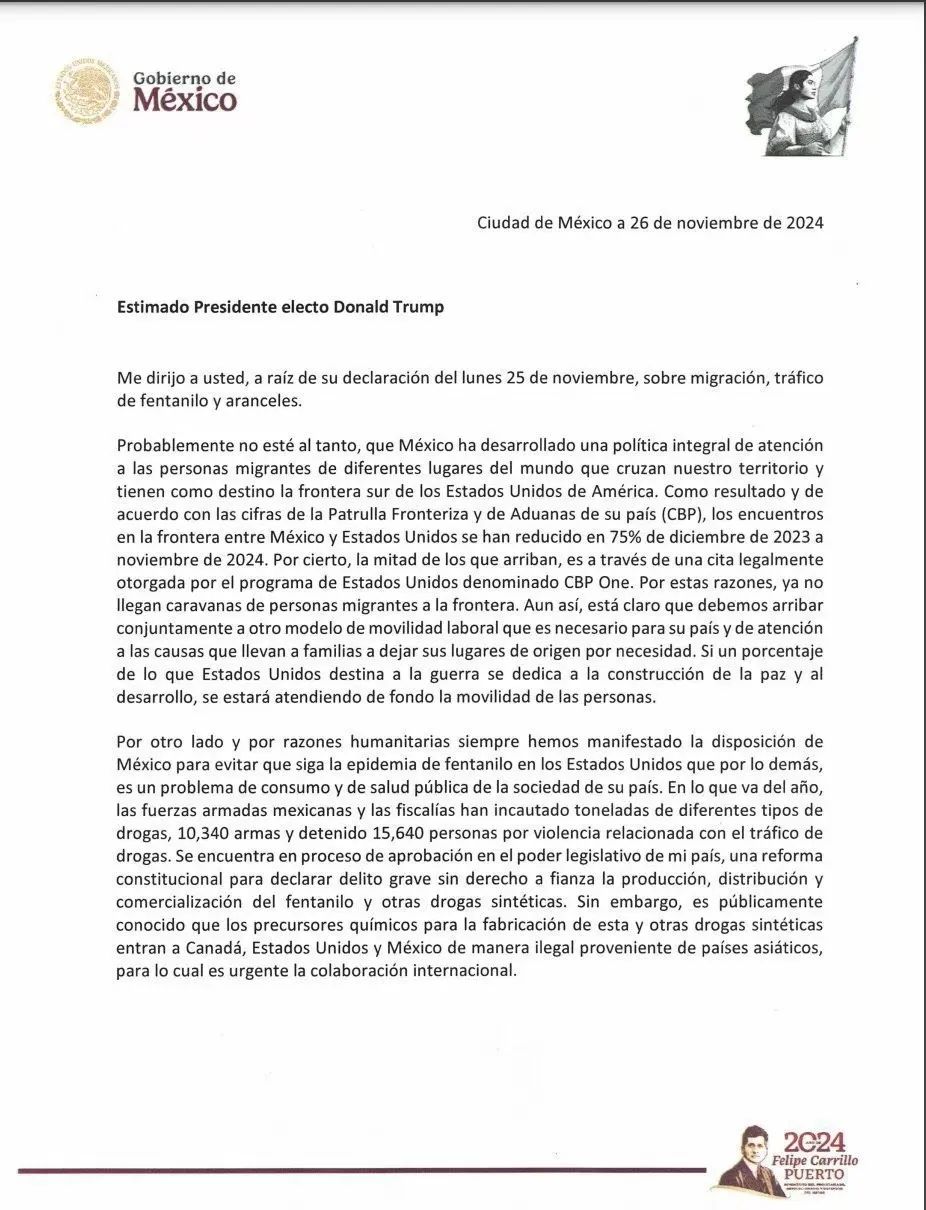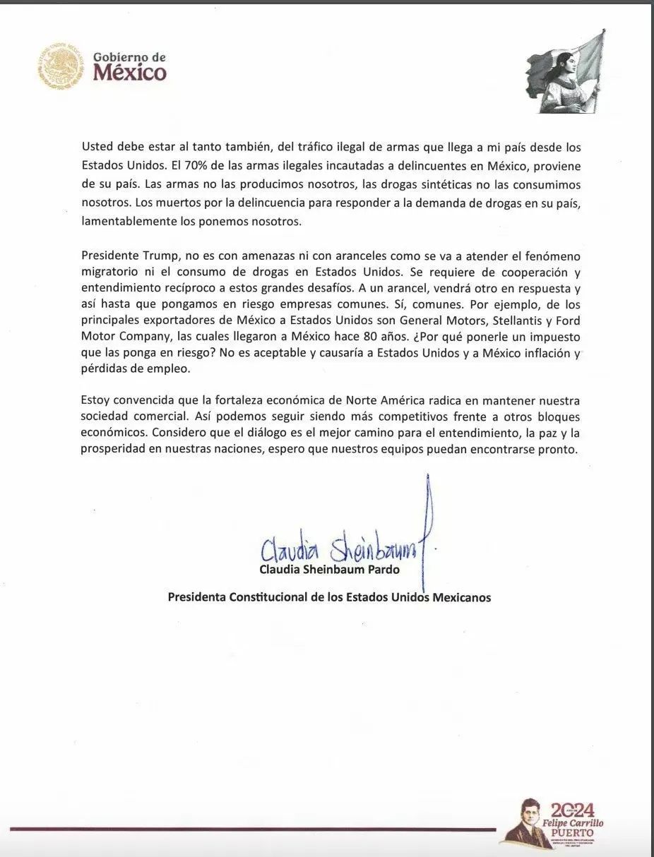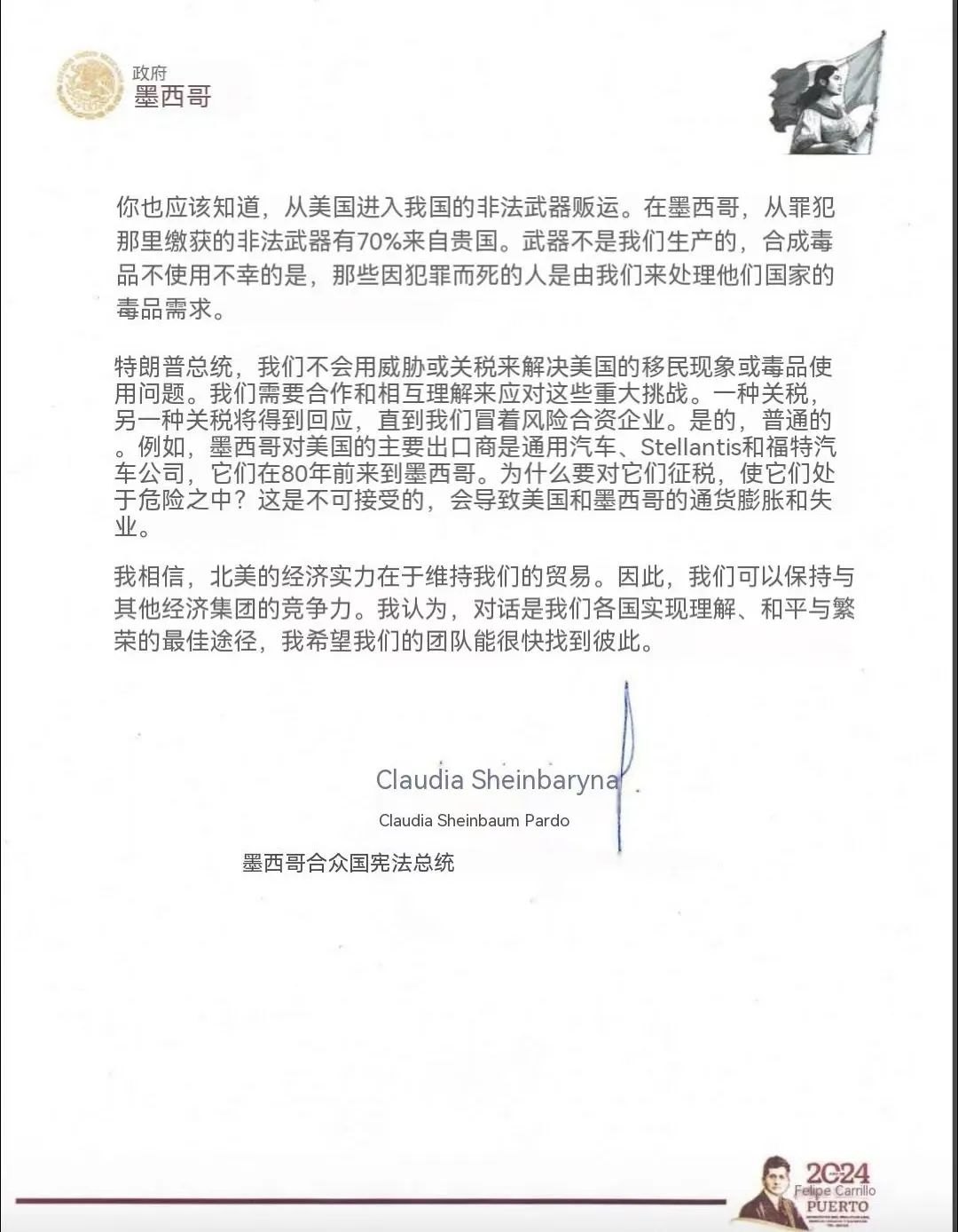 墨西哥对美国的主要出口商是通用汽车、Stellantis和福特汽车公司,它们在80年前来到墨西哥。为什么要对它们征税,使它们处于危险之中?这是不可接受的,会导致美国和墨西哥的通货膨胀和失业。