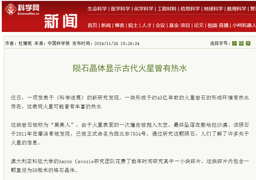 近日,科技媒体scitechdaily披露了一项重要发现,科学家们通过一块昵称为“黑美人”的火星陨石,找到了火星早期存在热水活动的直接证据,这一发现为火星可能适宜生命存在的理论增添了新的有力支撑。这块编号为NWA 7034的火星陨石,重量达到了320克,成为了此次研究的关键。研究团队由科廷大学、洛桑大学、阿德莱德大学等多家知名机构的科研人员共同组成,他们的研究成果已发表在《科学进展》这一权威杂志上。科学网对此也进行了转载报道。