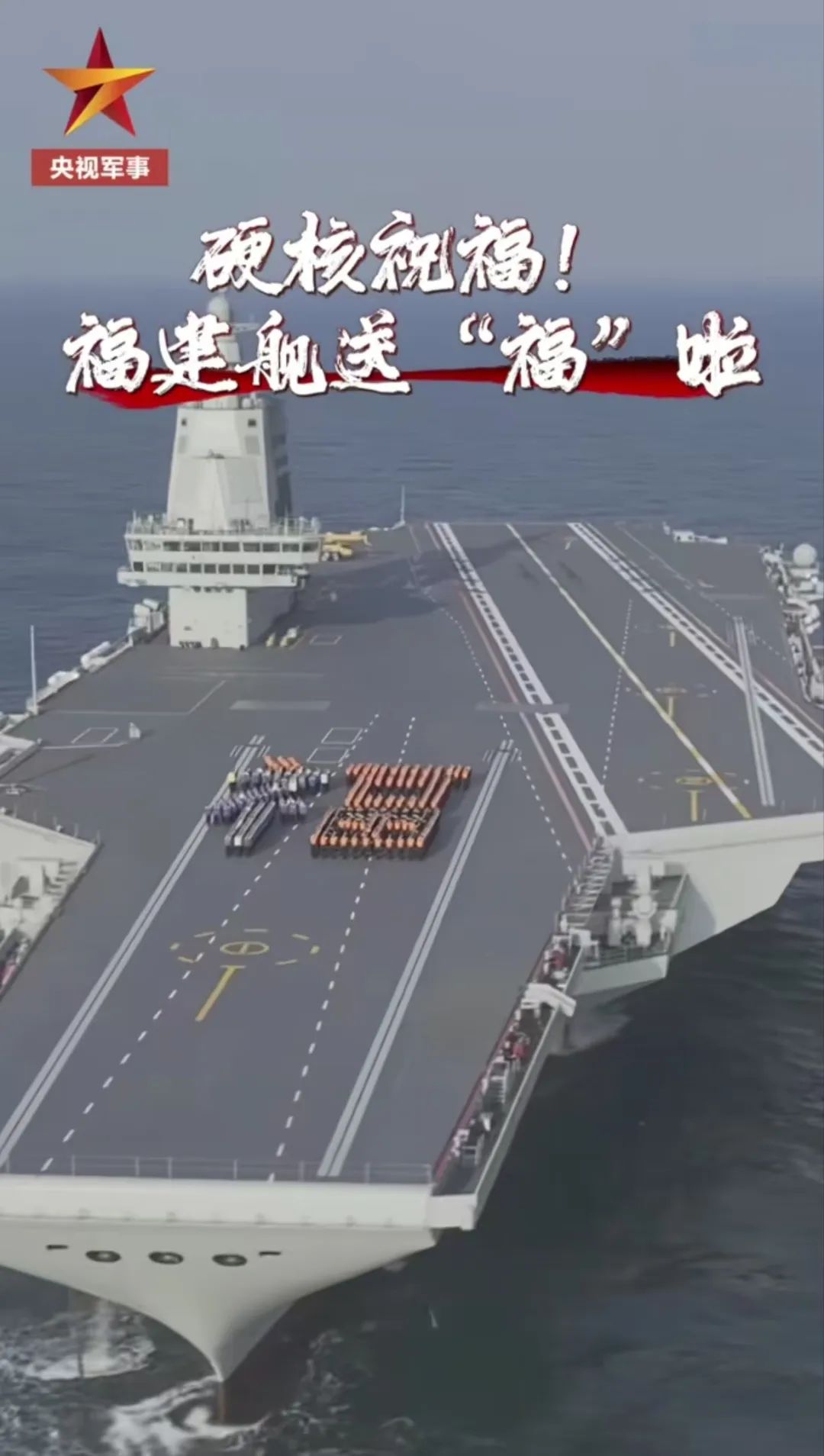 福建舰向全国人民拜年,那是一个大大的福字,硬核祝福。