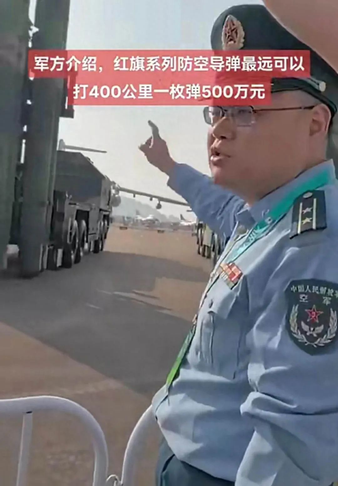 之前网上便流传红旗-9B的最大射程是400公里,但是这个数据一直没有官方背书。直到最近,网上流传出一段视频。内容是去年珠海航展期间,空军一名解说员在向观众介绍红旗-9B导弹时提到其“最远可以打400公里”。算上第一次从官方层面确认了红旗-9B的最大射程就是400公里。