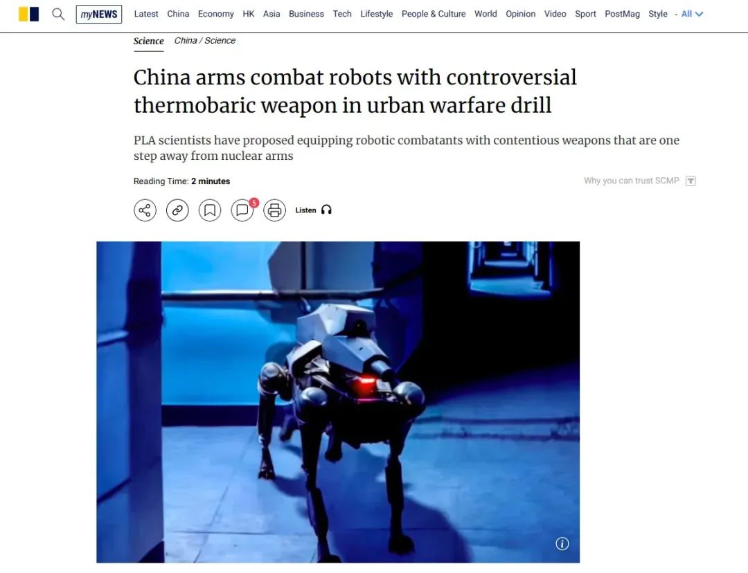 解放军的无人化装备进展日益成为国际瞩目的焦点,近日港媒南华早报依据大陆期刊论文披露,中国正在把机器狗和温压弹组合在一起进行作战。这一创新不仅是对“火力不足恐惧症”调侃的有力回应,更极有可能重塑未来城市巷战的格局。