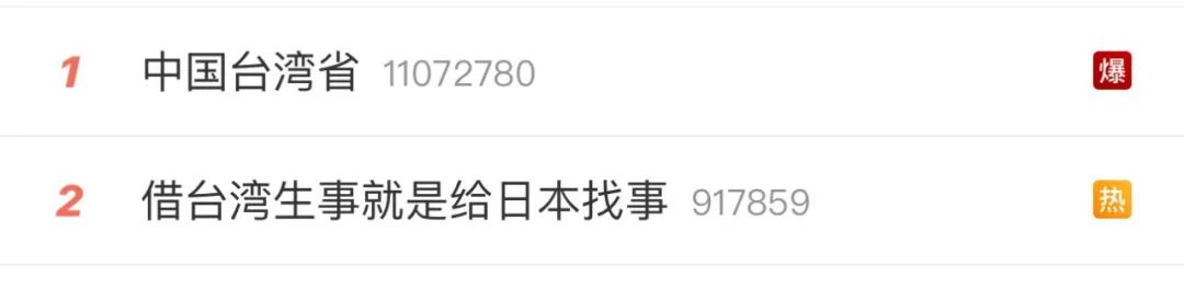 随后,“中国台湾省”冲上微博热搜第一,央视新闻发起的“台湾必归”话题在3小时内突破300万转发。