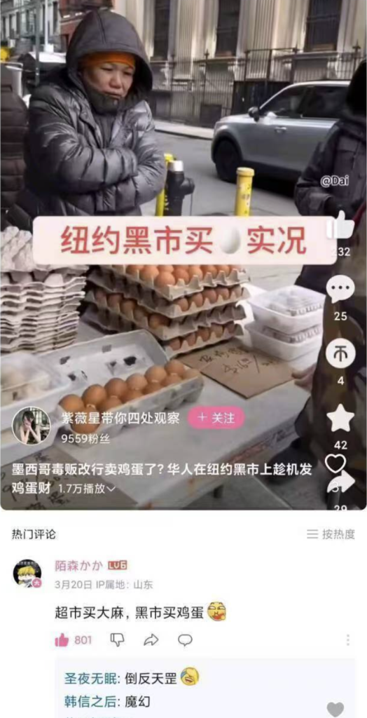 这些被墨西哥毒枭运进美国的鸡蛋,因为没有进货证明以及税单,超市不收,只能由小摊小贩在街头零售,所以最近美国街头卖鸡蛋的小贩突然多了起来。