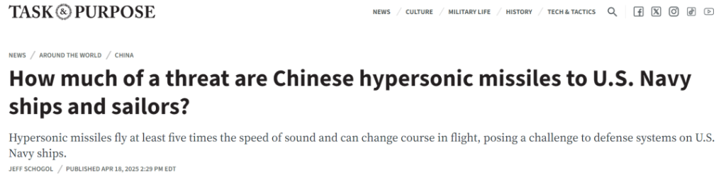 如今中国在反舰武器,尤其是高超音速导弹方面的领先优势,已经成为五角大楼无法忽视的“威胁”。美国“任务和目的”网站4月18日称,中国在反舰武器方面的快速进步,导致美国航母需要准备同时应对来自不同方向的多类型反舰导弹的突袭,一旦爆发中美冲突,“美国应该做好损失几艘航母的准备”。